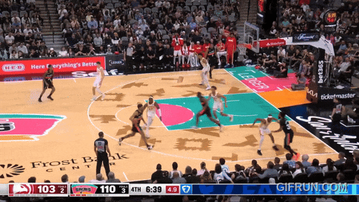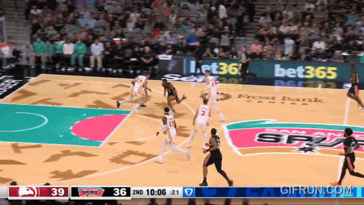 今天第一节,马刺在尽量带索汉;第二节,凯尔登和加西亚弱侧突击;第四节,中锋索汉小球阵。赢了。