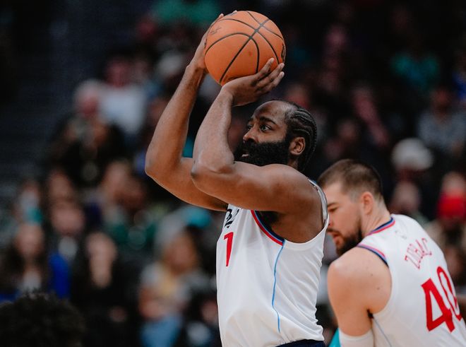 其次,科林斯首发表现远不如替补时的表现,那快船可以考虑让巴图姆扮演伪首发角色,把小卡固定在三号位位置,他和哈登在场,哈登给小卡和祖巴茨输送炮弹,第二阵容主要是由哈登和保罗来带动,避开小卡在衔接段所面临的防守压力。毕竟只让小卡和保罗带队,对手闭着眼都知道全力针对小卡就够了,其他人根本帮不上忙。这样一来,哈登可以在首发阶段由小卡分担终结压力;衔接段又能在保罗身边回归自己超级得分手角色,打乱对手的防守重心,哪怕哈登只是吸引包夹,保罗也能带动其他人开花。