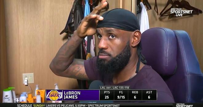 赛后,湖人球星詹姆斯接受了媒体采访。记者提问道:“如果你要防守对方球队,你会如何应对一支进攻能力如此强大的球队?”詹姆斯以调侃的方式回答道:“我没有办法。其实我有办法,但我不会把这些信息透露出去。”