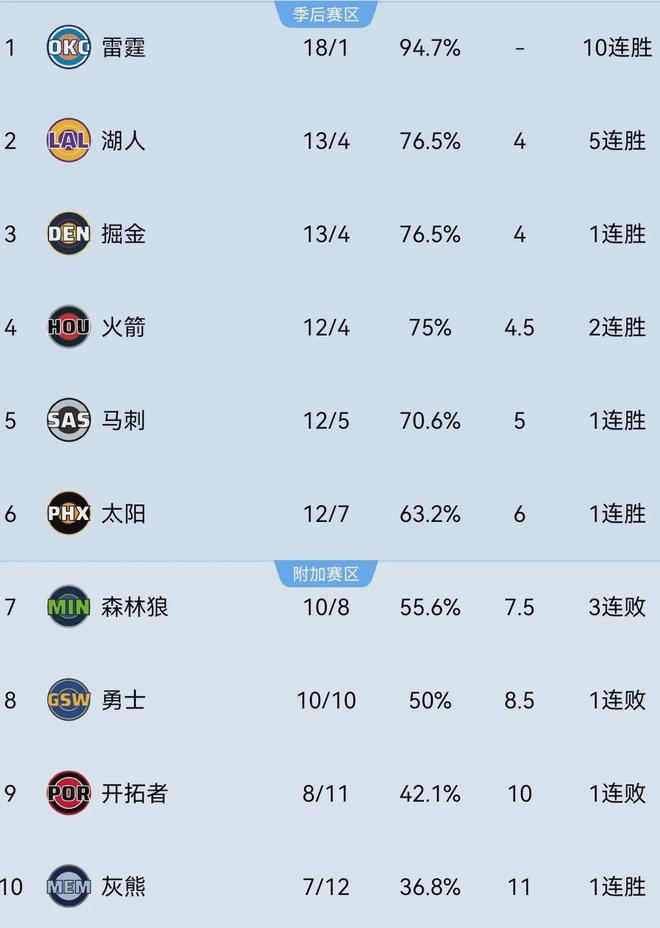 目前,火箭以12胜4负排名西部第四,勇士则以10胜10负排名西部第八,领先西部第11的爵士3.5个胜场。