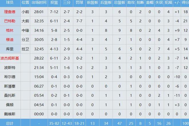 勇士数据如下: