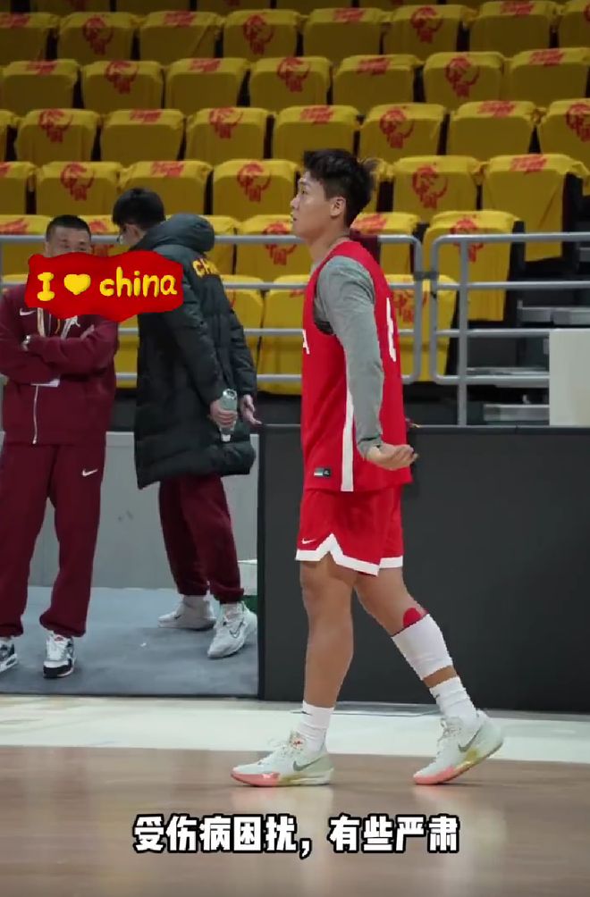 11月28日上午,中国男篮在五棵松体育馆进行了最后的踩场训练,注意到赵睿的右腿缠有厚厚的绷带,还贴着肌贴,表情看上去也十分严肃。