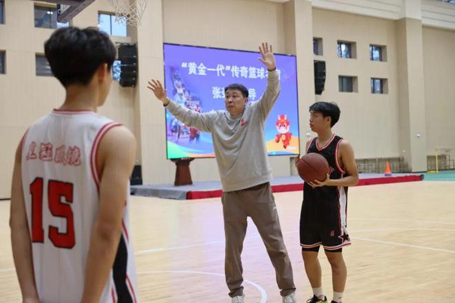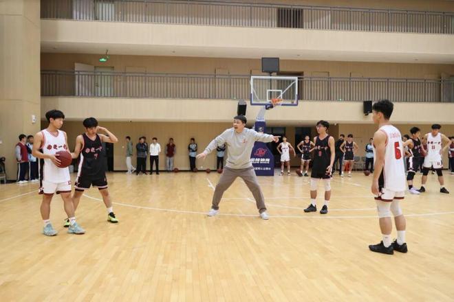 张劲松向队员们仔细讲解篮球技术,特别是防守方面的技术要领,并下场安排队员们与其配合,示范单人和多人防守的动作细节。在篮球名宿的指导下,队员们分成多组,展开攻防演练,如同实战。每当看到球员们顺利完成动作,他都会及时给予表扬。