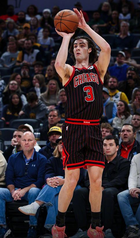公牛此役表现最出色的球员,依旧是吉迪,在全场受到步行者围剿的情况下,仍然凭借13次出手命中7球的效率,贡献了17分、11个篮板和7次助攻的全面个人数据,在他的传球组织下,公牛一共有5名球员得分上双,可惜末节最后时刻进攻端打不进,防守端又守不住,让公牛只能接受输球的结局。