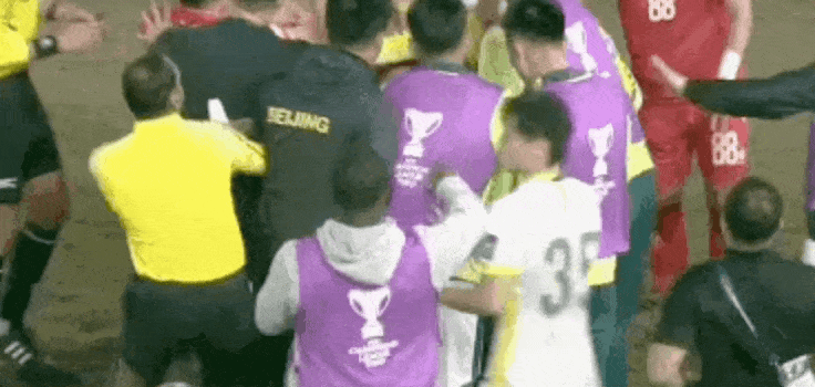 第90分钟,国安中场失误,阿图尔助攻阮廷北,门前推射破门,2:1!进球后的阮廷北疯狂庆祝,堪比夺冠!补时阶段,国安心态失衡,与对手发生大规模冲突,王刚将希纳摁在地上吃到黄牌,而曹永竞因环抱对手颈部,直接被红牌罚下!最终比赛结束,河内凭借着下半场的出色表现,完成逆袭!